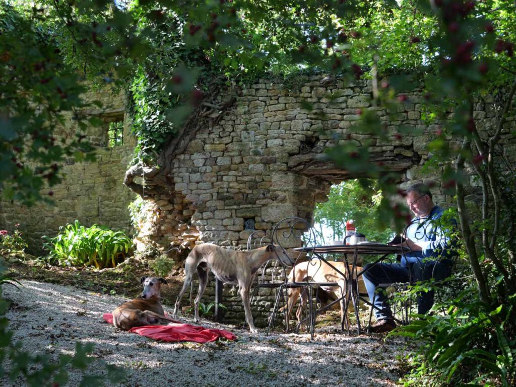 Das Besondere an unserem Ferienhaus La Benoîterie ist u.a. eine alte Ruine aus dem 13. Jahrhundert! Dieser besondere Ort ist umgeben von alten Eichen, einem kleinen Teich und wunderschönen Stauden.